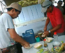 ビーチに戻って11時半。「パラセイリング&バナナボート」には、 食べ放題のランチと 使い放題のビーチグッズがセットになっているので ゆっくり休んでから砂浜で楽しむことに。 グアムに来ても 大好きな鶏の唐揚げを発見! うーれしいなー♪ やきそばも山盛りで海を見ながらランチ。
