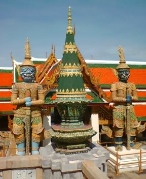 右はエメラルド寺院の門を守るため6体据えられた鬼神のうち2つ。