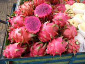 バスを降りるとドラゴンフルーツを売っている屋台も。色が綺麗。