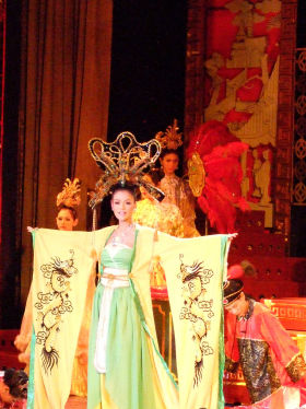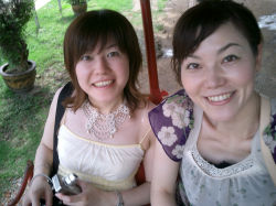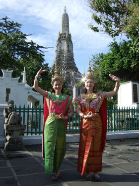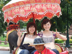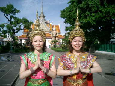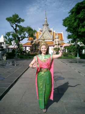 旅の勢いでタイの民族衣装に包まれてみました☆妹に後光が差しております(笑)。