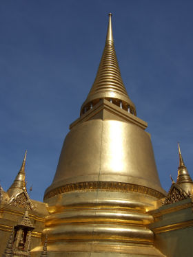 エメラルド寺院最古の仏塔と言われる1対の金色の塔。