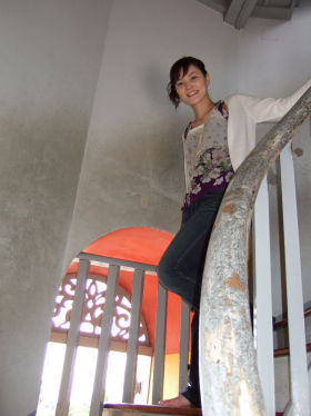 4層からなる塔は途中まで石段で登ることができて、
