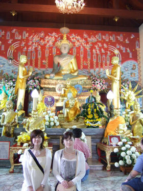 座幅9・55メートル。高さ12・45メートルのタイ最大級のブロンズ仏像で有名な仏堂。