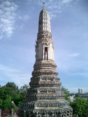 チャオプラヤー川西岸のアユタヤ時代の寺院跡にトンブリ朝のタークシン王が王家の寺として建てたもの。