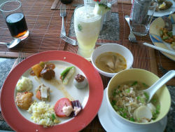 ランチ。午後になって蒸し暑いのと、遺跡は日陰がないので休憩がありがたい。