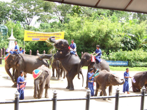2日目は寺院観光。さらにオプションで象さんショー。朝5時起きでしっかりと朝ごはん。
