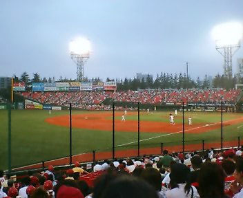 今回はナイター!本日の入場者は1万4742人とのこと。西武との対戦、結果は!!!…8対2で敗れました。あぁ。残念。。。