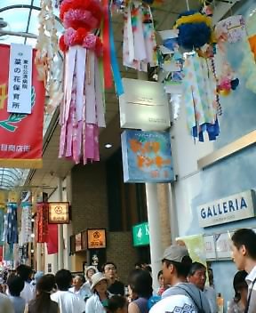 仙台のアーケード街を埋め尽くすように七夕飾りがつるされています。